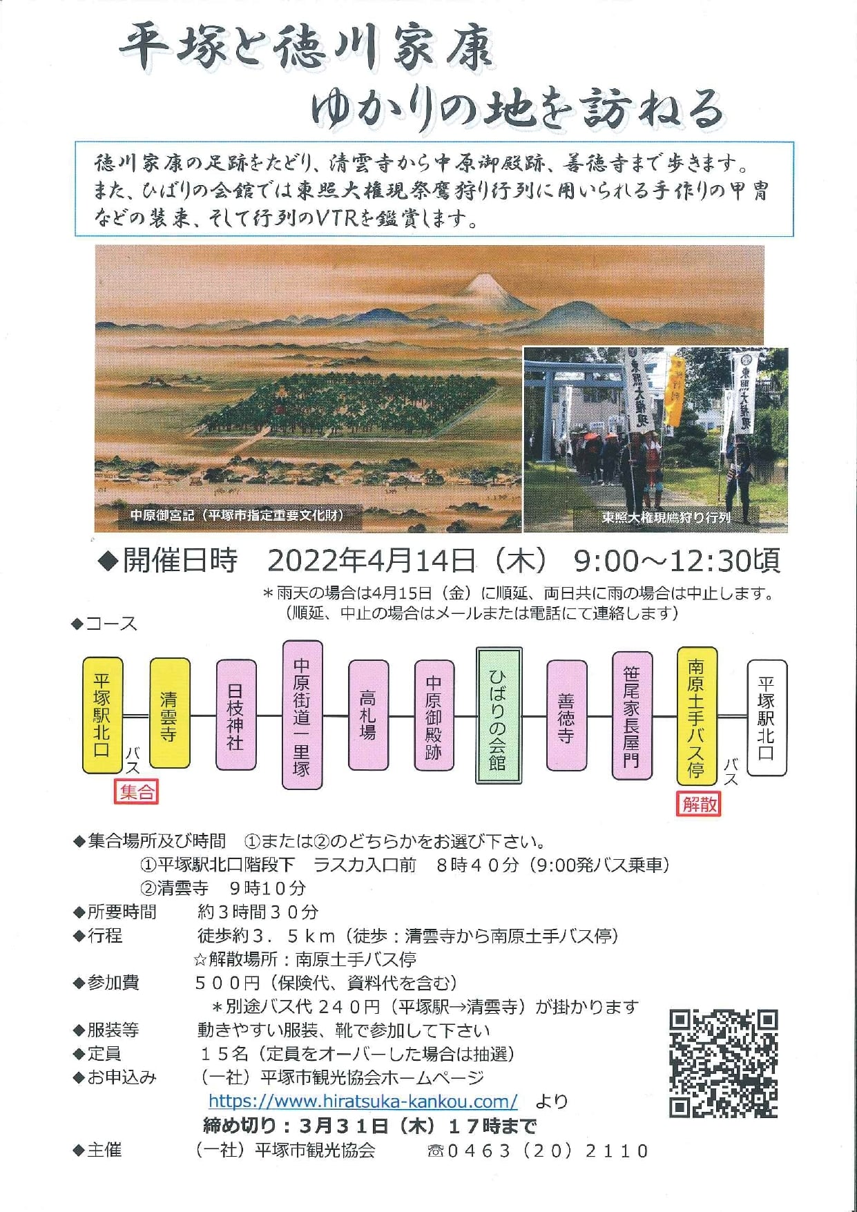 ~「平塚と徳川家康」ゆかりの地を訪ねる~ ツアー参加者募集!